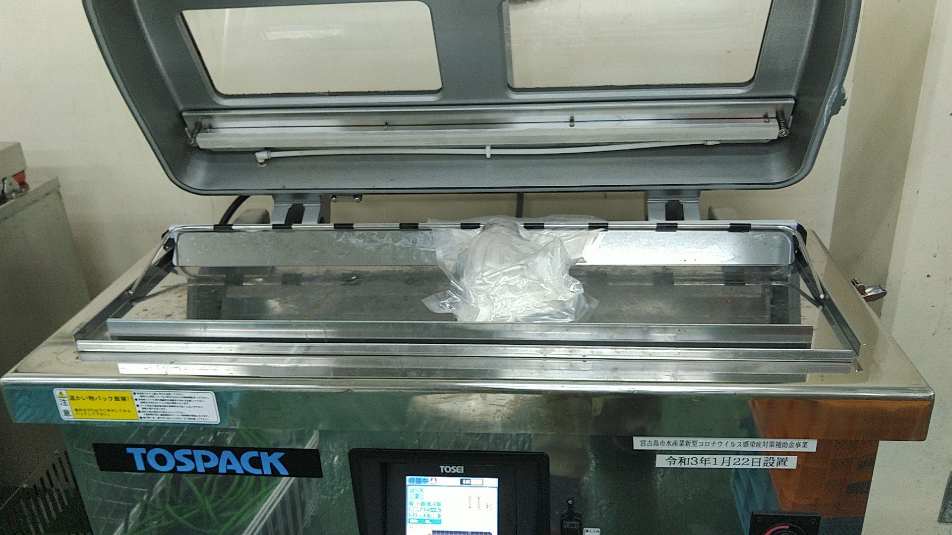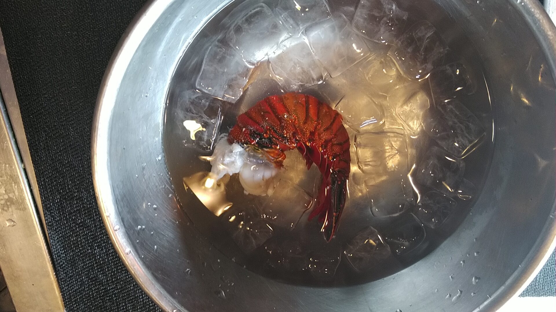 活伊勢海老を水氷で締め真空包装(伊勢海老の棘でビニール袋に穴が開くのでキッチンペーパーでくるみます。)して、急速冷凍機でマイナス35度まで一気に冷やしマイナス60度の冷蔵庫で保管して注文が入ったらクロネコヤマトの6号段ボールに梱包して冷凍便で発送する事になります。